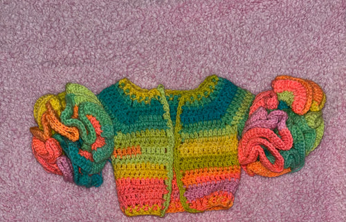 • Crochet Cardigan Top with 3D layered ruffle sleeves